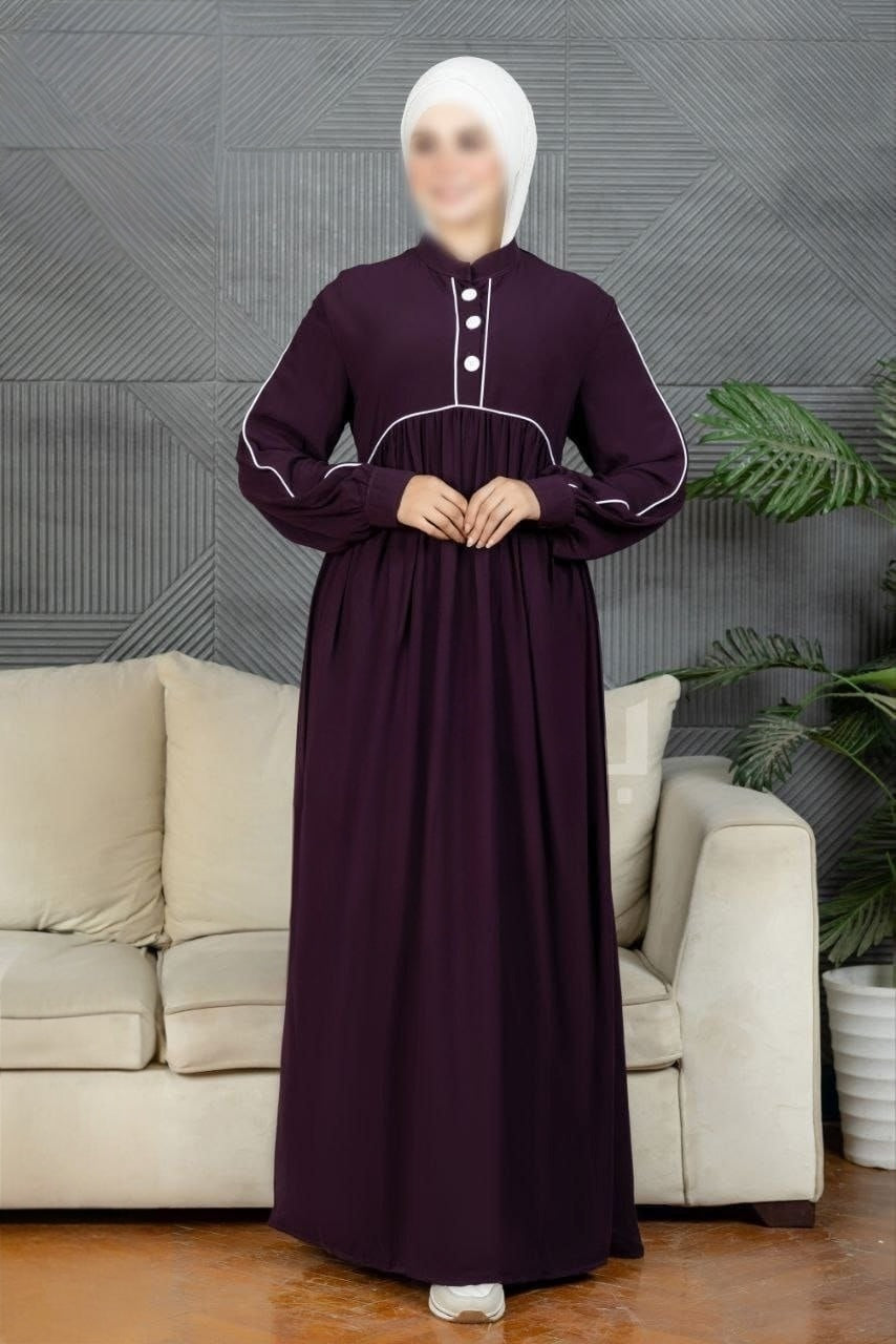 Abaya dress with three buttons on the chest with white ribbon and button cuffs.