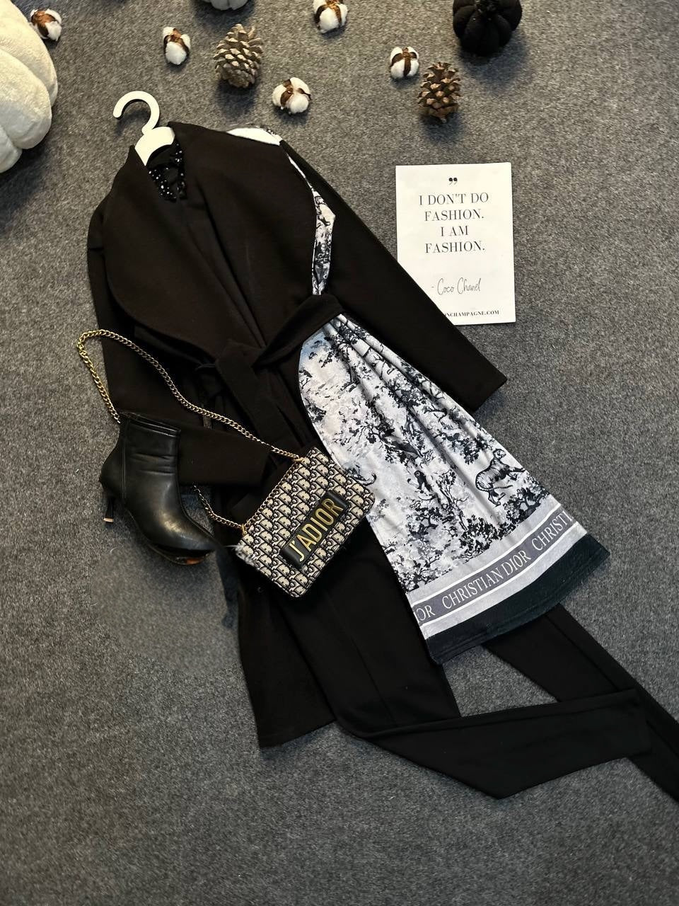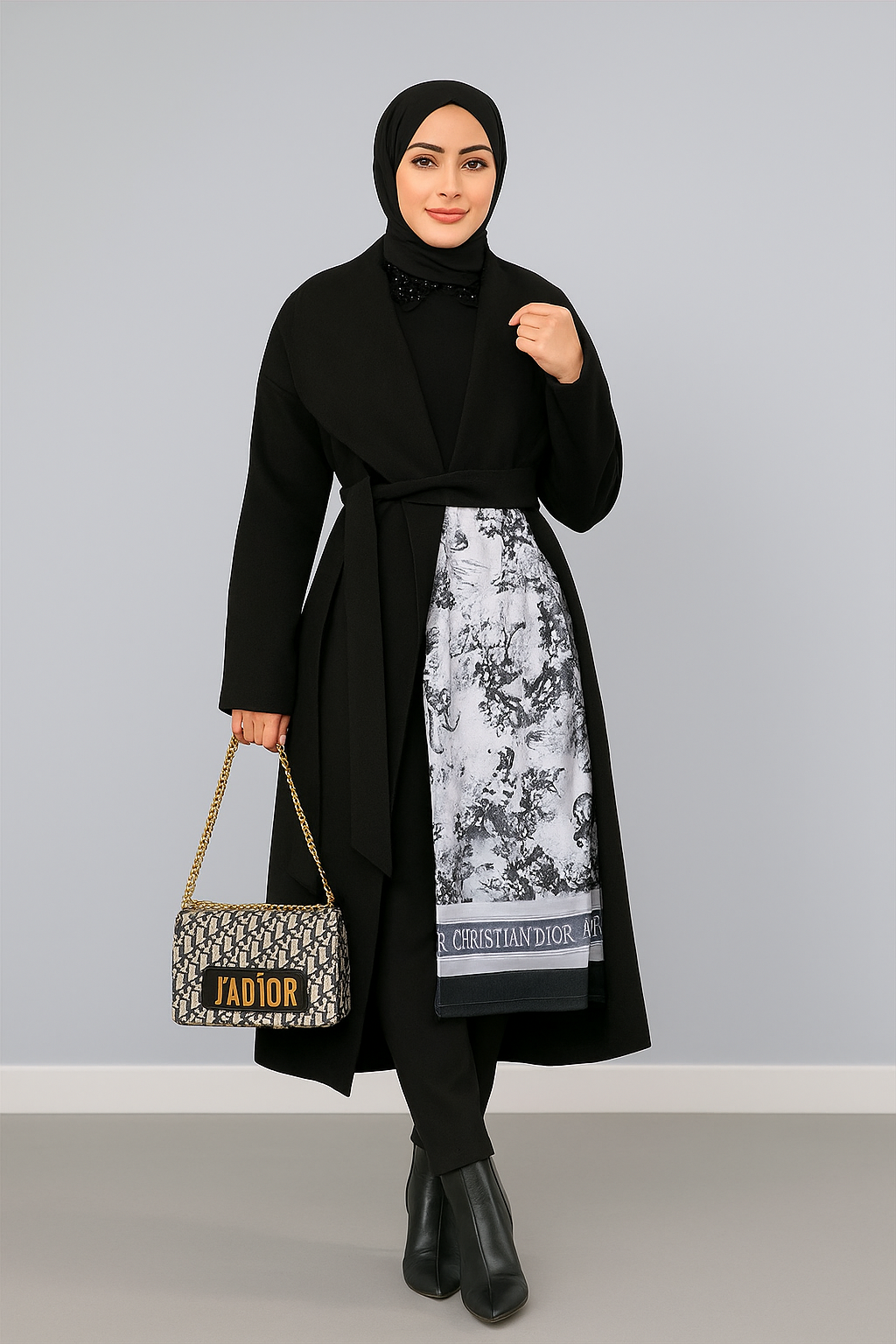 Plain & printed coat with a belt , can be wear open or closed with the belt.