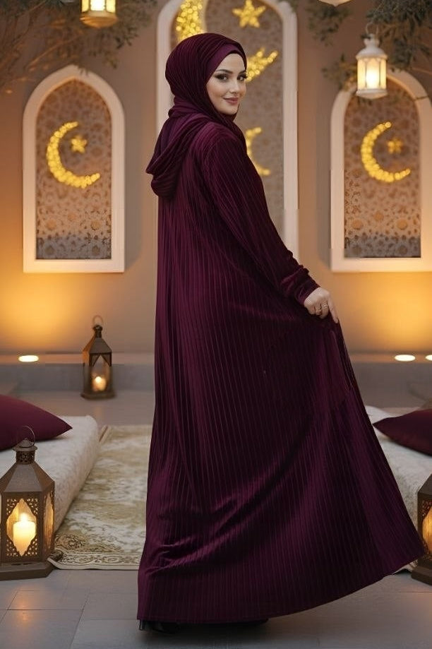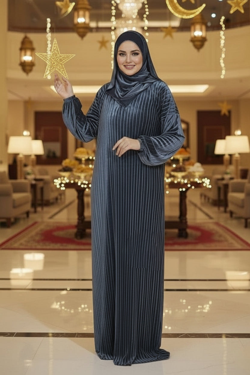 Elegant abaya / prayer dress with hoodie and small scarf, elasticated cuffs.
